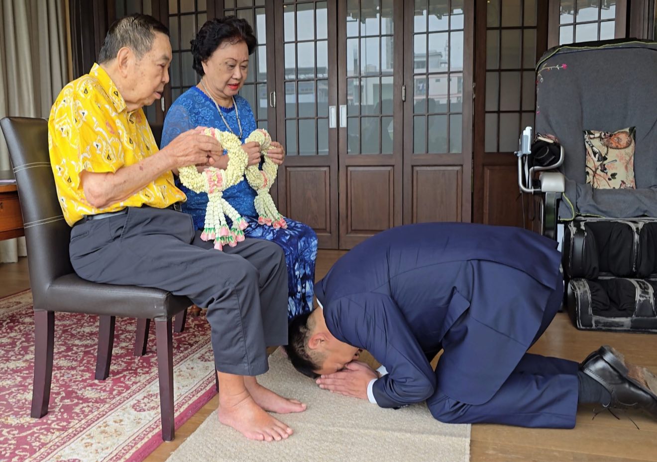 26 ก.ย.2568 นายอนุทิน ชาญวีรกูล นายกรัฐมนตรี และรมว.มหาดไทย โพสต์ข้อความและรูปภาพ ผ่านเฟซบุ๊กส่วนตัว เป็นภาพนำพวงมาลัยดอกมะลิ กุหลาบสีชมพู มอบให้ นายชวรัตน์ ชาญวีรกูล บิดา และ นางทัศนีย์ ชาญวีรกูล มารดา และกราบที่เท้าทั้งสองท่าน พร้อมระบุข้อความว่า “กราบลาพ่อแม่ไปทำงาน”