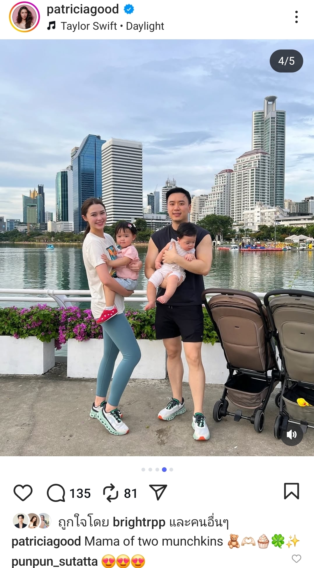 ล่าสุด ทั้งคู่ได้ใช้เวลาว่างสุดสัปดาห์พาลูกๆ ออกไปพักผ่อนหย่อนใจที่สวนสาธารณะ พร้อมเก็บภาพโมเมนต์สุดแสนจะอบอุ่นมาฝากแฟนๆ ผ่านโซเชียลมีเดีย ซึ่งเผยให้เห็นภาพ น้องเอลิเซีย ในฐานะพี่สาวที่เริ่มโตและ น้องแพทริค ที่กำลังอยู่ในวัยจ้ำม่ำปุ๊กปิ๊ก เรียกได้ว่าออร่าความน่ารักพุ่งกระฉูดจนใครเห็นเป็นต้องอมยิ้มตาม