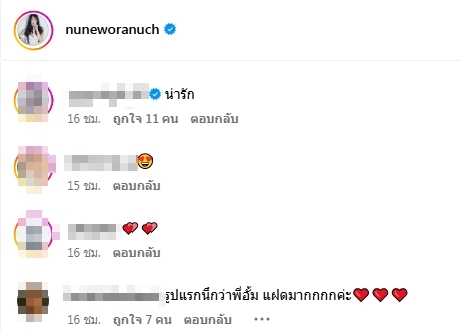 แถมล่าสุด เมื่อ นุ่น ลงภาพ โครสอัพหน้าใกล้ๆ แฟนคลับถึงกับเอ่ยปาก ว่า สวยจับใจมาก เหมือนแฝด พี่อั้ม เลยล่ะ