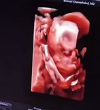 แต่ลูกดิ้นบ่อยมาก แต่ถ้ามาเจอคุณหมอ ลูกก็จะไม่ดิ้นแล้ว อย่างตอนนี้ได้เห็นหน้าแล้ว เขาเอามือปิดหน้าไว้ กว่าจะให้เห็นหน้าคือนานมาก หมอเขย่าท้องแล้วเขย่าท้องอีก ตอนนี้เราได้เห็นแล้ว หน้าตาประมาณนี้ น่ารักไหม