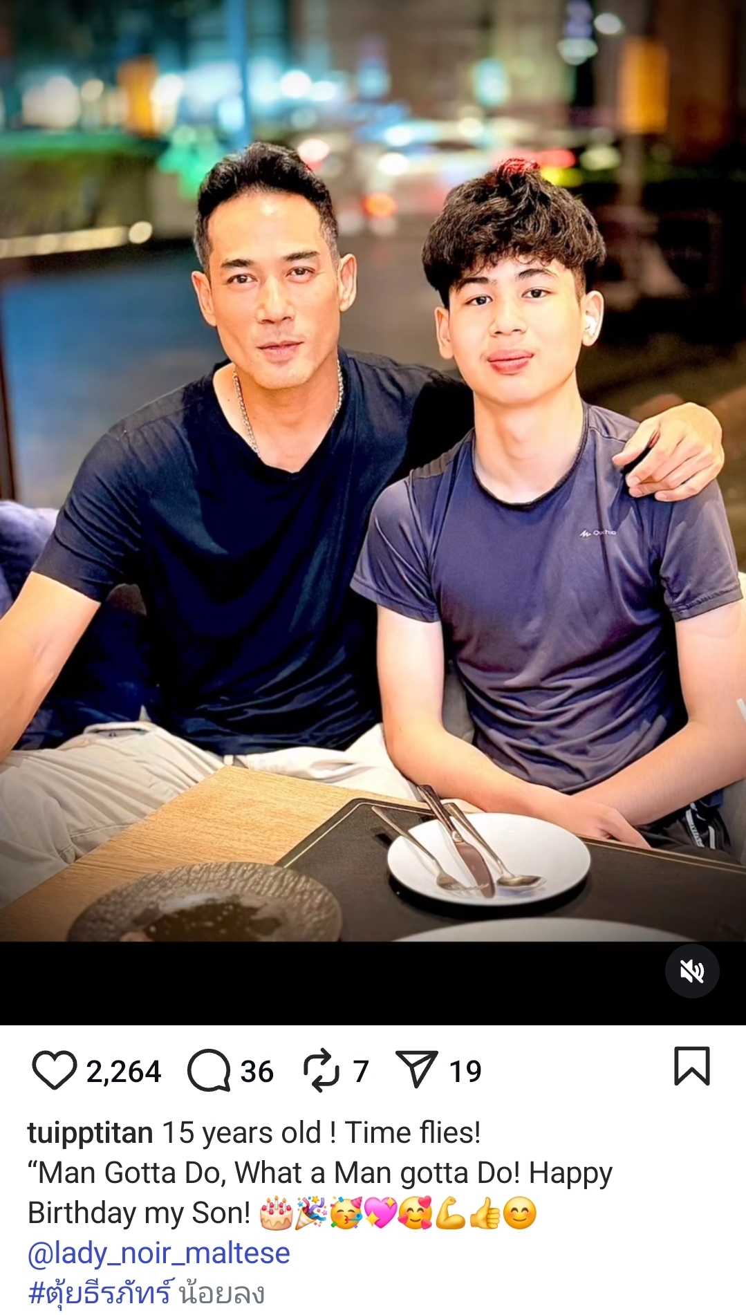 เป็นโมเมนต์ที่อบอุ่นและน่าประทับใจสุดๆ สำหรับครอบครัวของพระเอกรุ่นใหญ่ “ตุ้ย ธีรภัทร์ สัจจกุล” ที่ล่าสุดได้โพสต์ภาพสุดหล่อของลูกชาย “น้องไตตั้น” เพื่อฉลองวันคล้ายวันเกิดอายุครบ 15 ปี ลงบนอินสตาแกรม พร้อมแคปชั่นที่สื่อถึงความรักและความผูกพันของพ่อลูกได้อย่างลึกซึ้ง