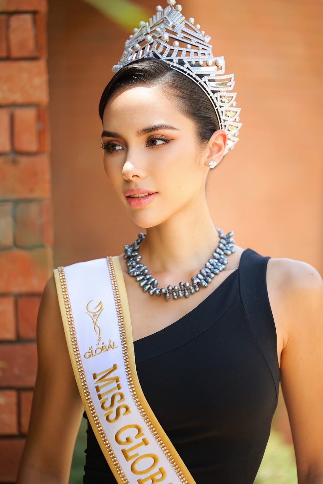 * แซฟฟรอน มายา สนูค (ผู้ชนะ Miss Global Thailand 2025 และ JC Digital Muse) เลือกสร้อยคอ “Mystic Lagoon” ที่ทำจากไข่มุกบาร็อคสีเข้มสุดลึกลับ สะท้อนตัวตนที่แตกต่าง