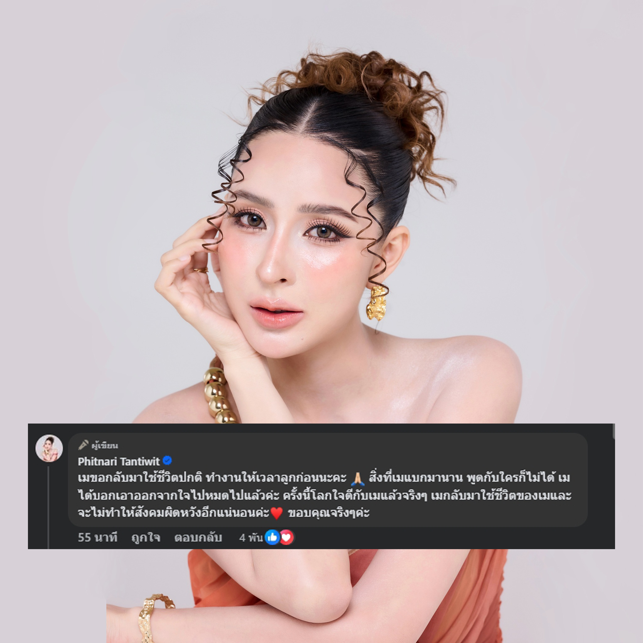 สิ่งที่เมแบกมานาน พูดกับใครก็ไม่ได้ เมได้บอกเอาออกจากใจไปหมดไปแล้วค่ะ ครั้งนี้โลกใจดีกับเมแล้วจริงๆ เมกลับมาใช้ชีวิตของเมและจะไม่ทำให้สังคมผิดหวังอีกแน่นอนค่ะ
