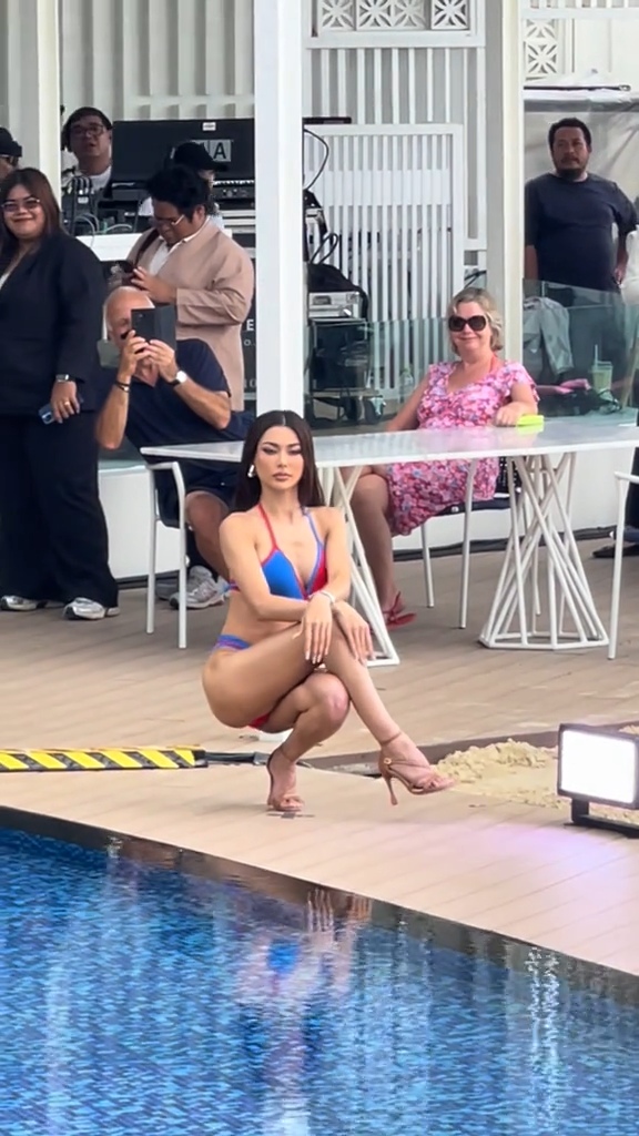 เมื่อถึงคิวของสาว “กชเบล” เธอก็ไม่ทำให้ผิดหวัง! ปรากฏตัวในชุดว่ายน้ำทูพีซที่ขับเน้นสรีระสุดเป๊ะ พร้อมเดินสับขาออกมาด้วยความมั่นใจเกินร้อย แต่ช็อตที่เรียกเสียงฮือฮาและทำให้เวทีแทบลุกเป็นไฟ คงหนีไม่พ้นท่าโพสสุดไอคอนิกของเธอ ที่ขอกลับมาทวงบัลลังก์ความสตรองอีกครั้ง!