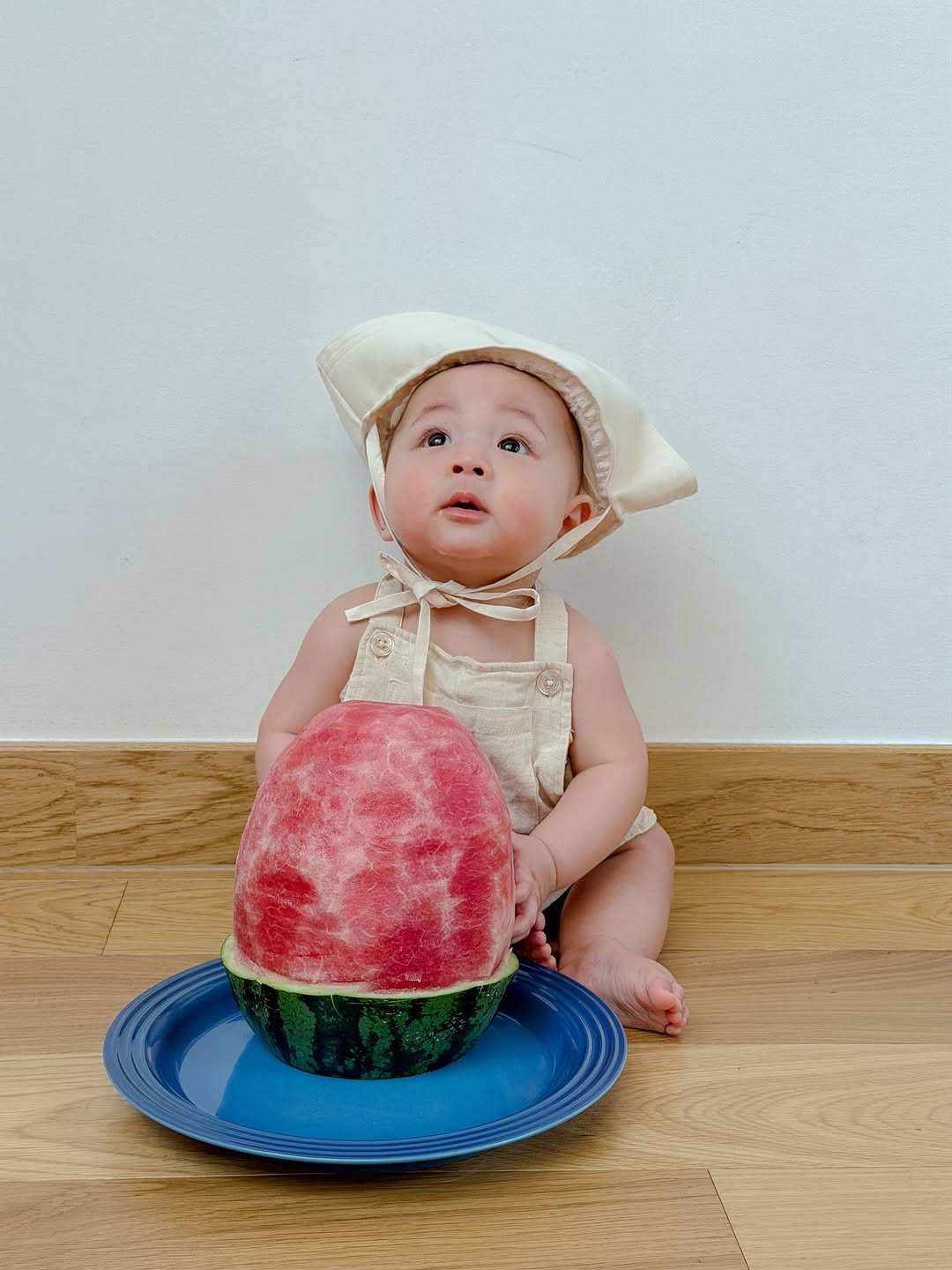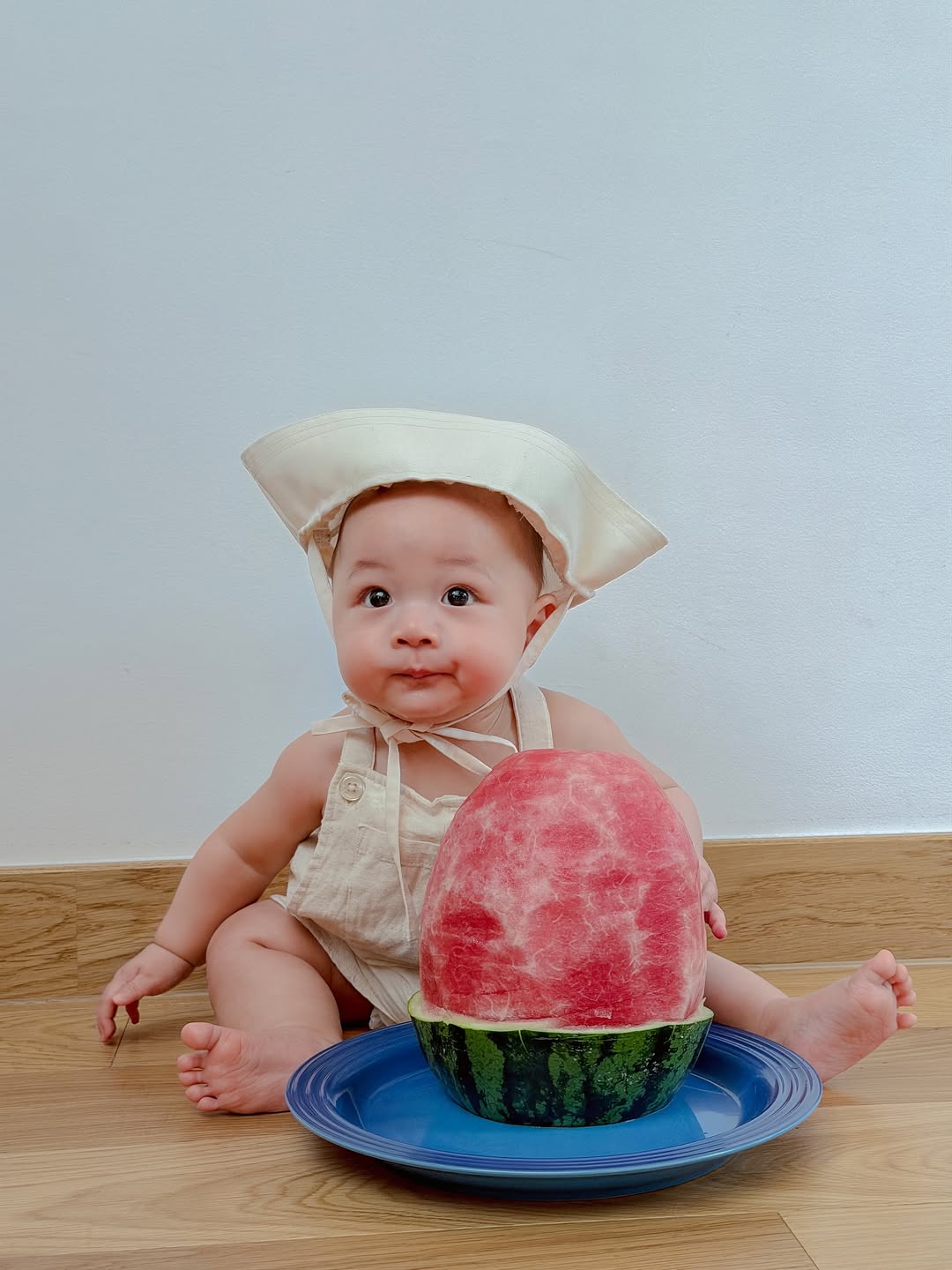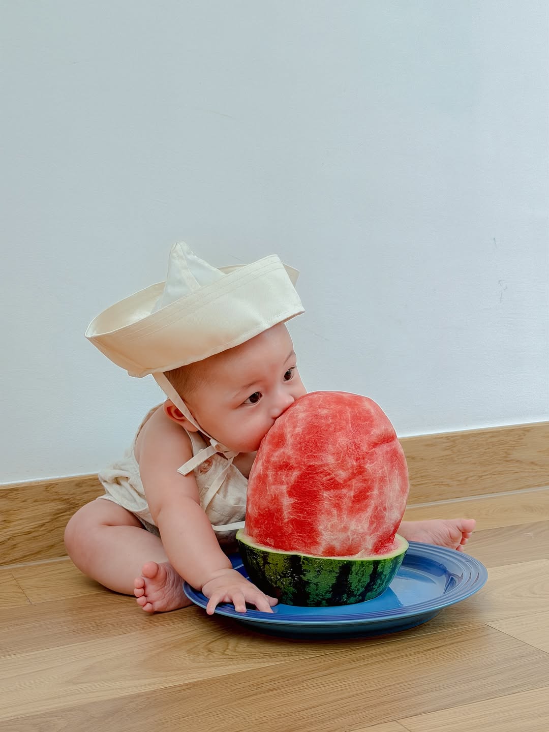 สำหรับเมนูฉลองครึ่งขวบนี้ คุณแม่ใบเตยเล่าเบื้องหลังสุดน่ารักว่า “เดือนนี้เลือกแตงโมมาให้ เพราะถึงเวลาที่ลูกเริ่มทานผลไม้ได้แล้ว แตงโมก็เป็นผลไม้อีกอย่างที่แม่ชอบทานตอนลูกอยู่ในท้อง (ทานทีครึ่งลูก) ให้ฌานชิมฌานจอยมากๆ” แสดงให้เห็นว่าน้องฌานนั้นได้ลิ้มรสชาติแตงโม ซึ่งเป็นของโปรดของคุณแม่มาตั้งแต่ยังไม่ลืมตาดูโลกเลยทีเดียว