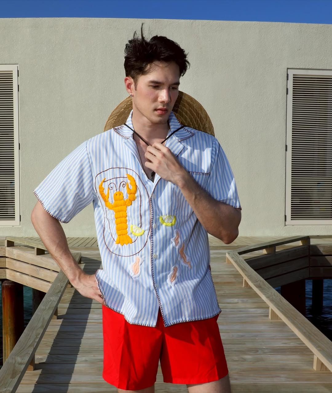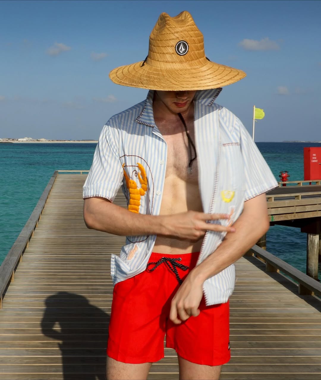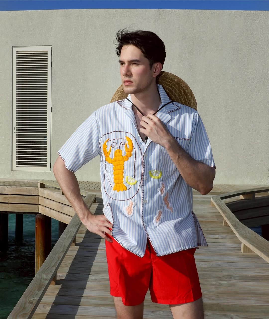 พระเอกสายอบอุ่นอย่าง มิกค์ ทองระย้า ขอเติมดีกรีความแซ่บให้วันหยุด ด้วยภาพเซ็ตใหม่ที่ทำเอาแฟนๆ ต้องกดเซฟกันรัวๆ โดยเจ้าตัวเลือกสวมเสื้อเชิ้ตลายทางสุดคิ้วท์ที่ปักลาย ‘กุ้งมังกร’ สีส้มสดใส คู่กับชอร์ตกีฬาสีแดงเพลิง พร้อมแคปชั่นบ่นว่า “โอ๊ยยย…แดดร้อนน”