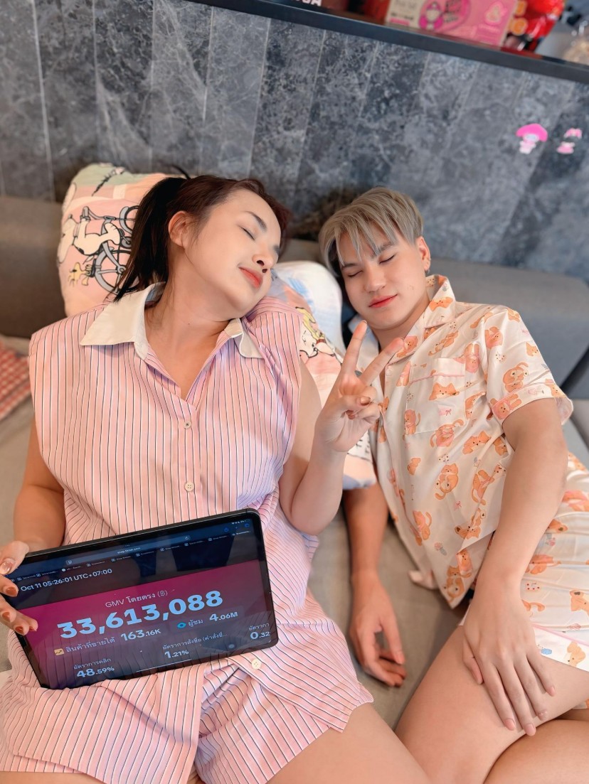 แต่ล่าสุด เหมือนฟ้าเปิดทางใหม่ให้กับ “บูม” อีกครั้ง เมื่อ “เจนนี่ ได้หมดถ้าสดชื่น” และ “ยิว ฉัตรมงคล” ชวนมาร่วมไลฟ์ขายของด้วยกันบน TikTok บรรยากาศการไลฟ์เต็มไปด้วยความสนุก พลังบวก และความเป็นธรรมชาติ จนเคมีของทั้งสามเข้ากันอย่างลงตัว ยอดขายพุ่งกระฉูดและกลายเป็นไวรัลในชั่วข้ามคืน