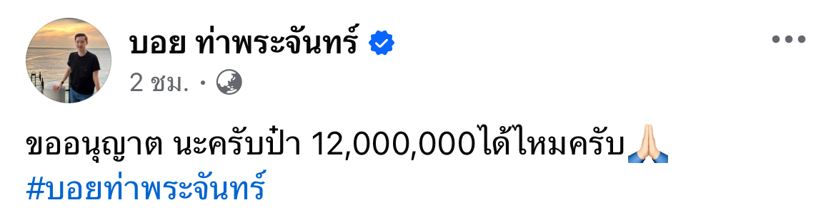 ล่าสุดมีความเคลื่อนไหวจาก บอย ท่าพระจันทร์ โพสต์ในเพจว่า ผมเป็นเพียงแค่เซียนพระตัวเล็กๆ คนหนึ่ง แต่สิ่งที่ผมยืนหยัดมาตลอดปีเกือบ 33 ปี คือ “ศรัทธา” และความจริง