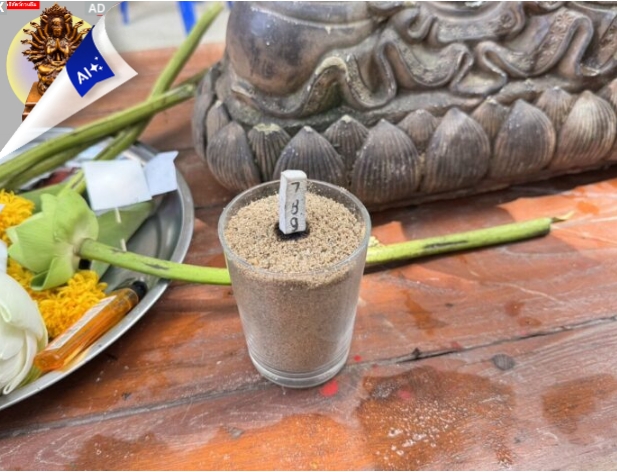 จากนั้นร่างทรงได้ทำพิธีเบิกเนตรและให้ชาวบ้านได้นำแผ่นทองมาปิดและจุดธูปเสี่ยงทายขอตัวเลขได้เป็น “789“