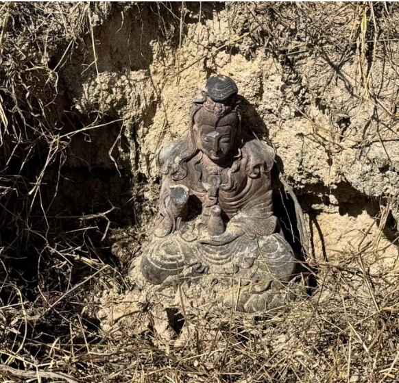 ที่ “วัดห้วยน้อย” ม.6 ต.แม่ลาด อ.คลองขลุง จ.กำแพงเพชร ชาวบ้านจำนวนมากเดินทางมาดูเทวรูปเจ้าแม่กวนอิม (เก่าเเก่) ที่คาดว่าจะมีอายุไม่ต่ำกว่า 100 ปี ซึ่งมีชาวบ้านมาพบบริเวณริมคลองหลังวัด อยู่ในหลุมดินที่ยุบตัวลงไปและถูกคลุมด้วยกอหญ้า