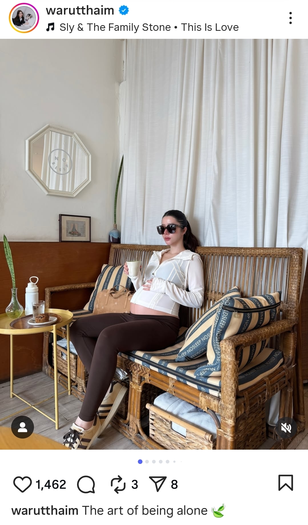​สิ่งที่เรียกความสนใจจากแฟนๆ ไม่แพ้ภาพสวยๆ คือแคปชั่นที่ว่า “The art of being alone #selfcare” (ศิลปะการอยู่คนเดียว #ดูแลตัวเอง) ซึ่งแสดงให้เห็นว่าแม้จะกำลังทำหน้าที่คุณแม่ที่กำลังอุ้มท้อง แต่สาวเนยก็ไม่ลืมที่จะให้เวลากับการ “Self-Care” ดูแลตัวเองทั้งร่างกายและจิตใจอย่างเต็มที่ ก่อนจะต้อนรับลูกน้อยออกมาลืมตาดูโลก งานนี้ทำเอาแฟนๆ แห่เข้ามากดไลก์และคอมเมนต์ชื่นชมในความสวยไม่หยุด พร้อมอดลุ้นไม่ได้ว่าทายาทคนแรกของบ้าน กาไชย จะเป็นลูกสาวหรือลูกชายกันแน่!