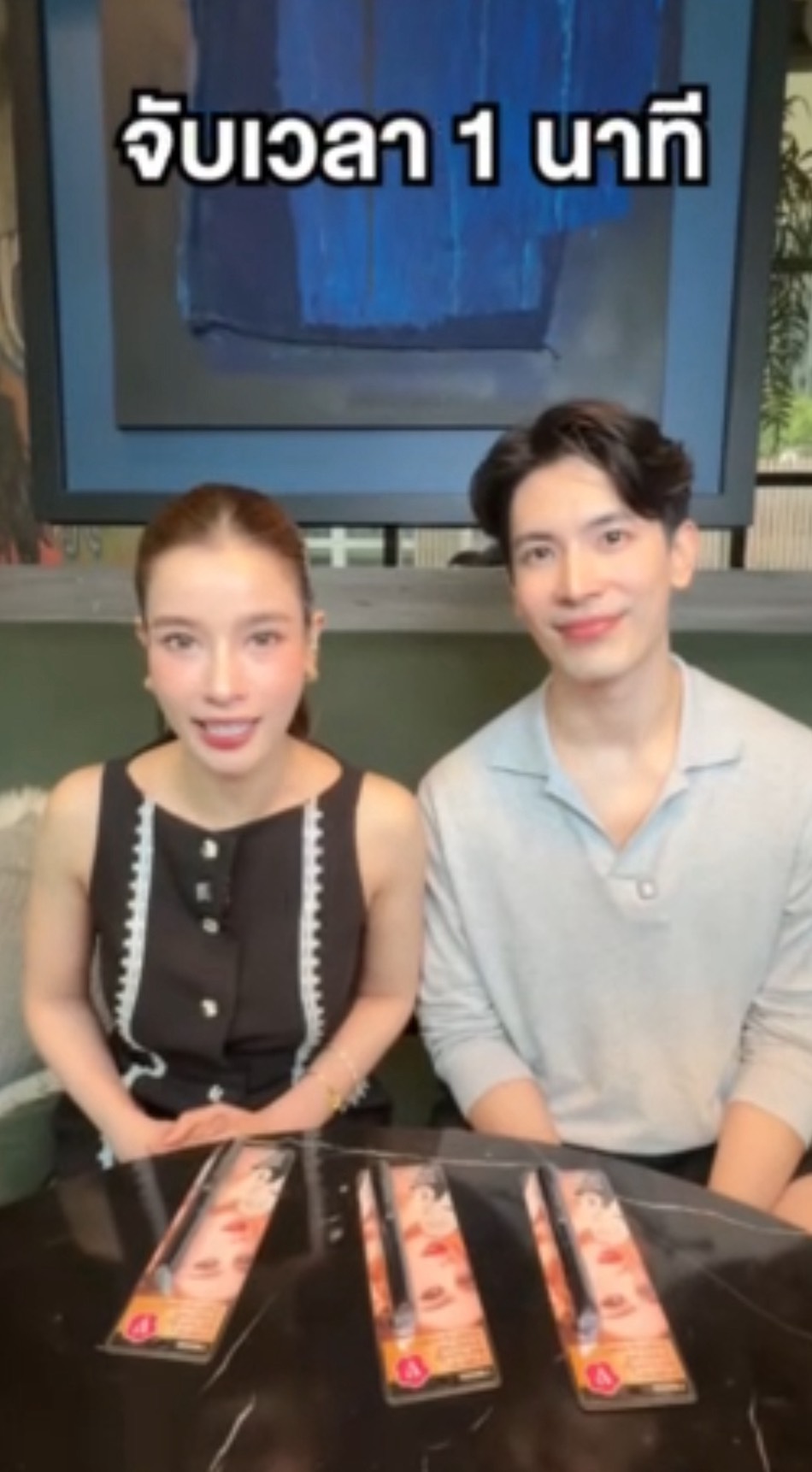 วิวเริ่มต้นเปิดเกมก่อนด้วยการ “ท้า” สน แข่งปัดมาสคาร่าใน 1 นาที ใครแพ้ต้องโดนลงโทษด้วยการกิน “นัตโตะ” หรือ “วาซาบิ” ซึ่งสนตอบรับอย่างมั่นใจเต็มร้อย แต่จังหวะเปิดเกม…สนดันลืม “เปิดฝามาสคาร่า” จนวิวต้องสะกิดบอกว่า “แกะออกมาก่อน!”