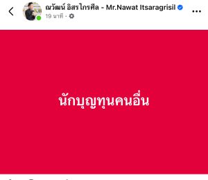 โดยได้โพสต์ แคปชั่นข้อความ ระบุว่า “นักบุญทุนคนอื่น” งานนี้ทำเอาชาวเน็ตอยากใส่ใจ หมายถึงใครกันนะ อย่างไรก็คงต้องรอฟังจากปากบอสณวัฒน์กันอีกที