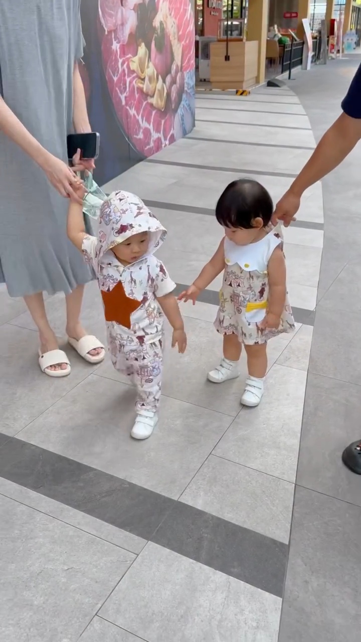 หลังจากซื้อของเสร็จเรียบร้อย คุณพ่อแดน และคุณแม่แพทตี้ ก็ตัดสินใจพาลูก ๆ เดินเล่นในสวนของศูนย์การค้าแบบชิลล์ ๆ ซึ่งโมเมนต์ที่ทำเอาทุกคนต้องยิ้มตามคือขณะที่ น้องลิกก้า และ น้องโรร่า เดินดูสิ่งต่าง ๆ รอบตัวด้วยความตื่นตาตื่นใจ น้องโรร่า ก็ได้ยื่นมือน้อย ๆ ของตัวเองไปจับมือพี่ชาย พาเดิน จูงมือ ไปด้วยกัน ภาพความละมุนแบบไม่ต้องปรุงแต่งนี้ ทำเอาคุณแม่แพทตี้ และคุณพ่อแดน ที่เห็นด้วยตาตัวเองถึงกับ ใจเหลวเป๋ว ด้วยความเอ็นดูในความผูกพันของลูก ๆ