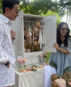 ซึ่งบรรยากาศภายในคลิป ช่วงเฉลยเพศลูก โดยทั้งคู่เปิด “ตู้เสื้อผ้าเด็ก” ที่เตรียมไว้ และเผยให้เห็นเสื้อผ้าของเด็กผู้ชาย ทำเอาคนรอบข้างที่ร่วมงาน ต่างกรี๊ดและเสียงปรบมือดังกันสนั่น งานนี้ยังมี “เบลล่า ราณี” ที่ เข้ามาคอมเมนต์ คลิปดังกล่าว พร้อมระบุว่า “Boyyyyy เกียมรับของจากพี่เบวเบวเลยลูกกก”