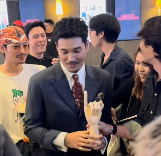 เฟย : มีรางวัลมามอบให้ครับ (ยื่นแขนหุ่นที่โชว์นิ้วก้อย)