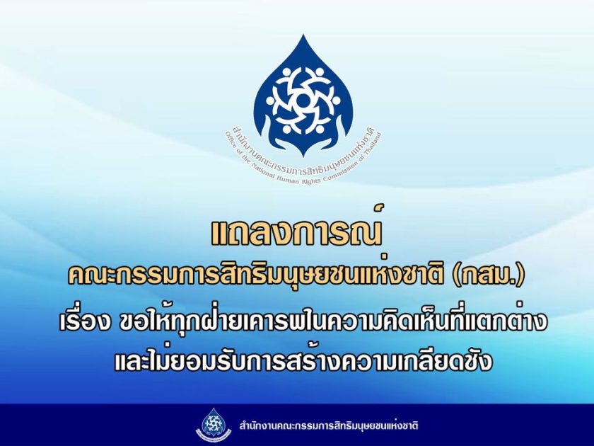 ด้วยเหตุนี้ กสม. จึงขอเน้นย้ำให้ทุกฝ่ายเคารพในความเห็นต่างและศักดิ์ศรีความเป็นมนุษย์ของคนทุกคนที่แม้จะแตกต่างกันด้วยเชื้อชาติ ศาสนา ภาษา หรือสถานะทางสังคมอื่นใด แต่ต่างก็มีคุณค่าในตนเอง ทั้งนี้ ขอให้สังคมร่วมกันสร้างพื้นที่ปลอดภัยในการแสดงความคิดเห็นและการวิพากษ์วิจารณ์อย่างสร้างสรรค์ ไม่ยอมรับการสร้างความเกลียดและการละเมิดศักดิ์ศรีความเป็นมนุษย์ในทุกรูปแบบ