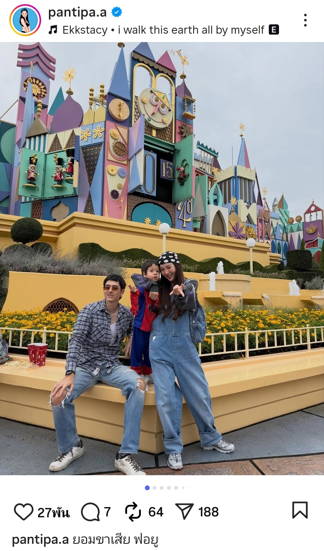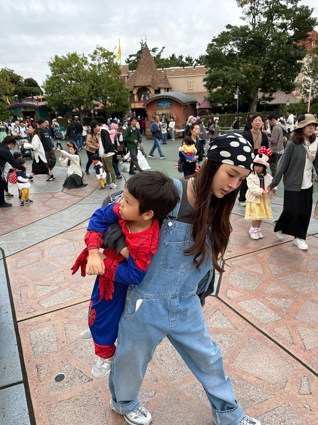งานนี้คุณแม่ปุ้มปุ้ยได้เผยภาพความสุขของครอบครัวตลอดทริป ทั้งภาพเล่นเครื่องเล่นสุดคลาสสิกอย่าง “Pooh’s Hunny Hunt” และภาพถ่ายหน้าปราสาท “It’s a Small World” ที่มาพร้อมแฟชั่นยีนส์สุดคูล แต่ที่เรียกเสียงฮือฮาและเป็นที่พูดถึงที่สุด หนีไม่พ้นภาพที่คุณแม่กำลังแบกน้องไซอัลบลู (ซึ่งมาในชุดสไปเดอร์แมนตัวน้อย) ไว้บนหลังอย่างทะมัดทะแมง