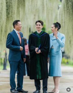 “เราก็สังเกตนะว่าเค้าอยากเป็นหมอจริงๆหรือเปล่า เพราะว่าเราต้องเอาให้ชัวร์เพราะหนทางอีกยาวไกล ตอนนั้นส่งเค้าไปเรียนคอร์สนึงที่ต่างประเทศ มันจะมีลง2วิชา เรียนหมอกับธุรกิจ ที่ต่างประเทศก็ฝึกและให้ทำจริง ประสบการณ์จริงก็จับเลือด จับอวัยวะภายใน ไปเรียนเป็นภาคฤดูร้อนกลับมาเค้าก็บอกว่าเค้าค้นพบแล้ว เค้าชอบ เราก็บอกว่าเอาให้ชัวร์นะเพราะว่าชีวิตแล้วต่อไปนี้มันต้องทุ่มเท ท้องเสียฉลาดมากๆและอีกยาวนานเลย เราก็บอกว่าถ้างั้นไปให้สุดไปให้เต็มที่”