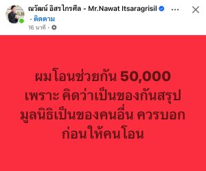 ก่อนหน้านี้ บอสณวัฒน์ อิสรไกรศีล ได้ออกมาโพสต์ภาพผ่านสตอรี่ อินสตราแกรม โดยได้โอนเงินเข้ามูลนิธิกันจอมพลัง จำนวน 5 หมื่นบาท เพื่อช่วยสถานการณ์ ชายแดนไทยกัมพูชา