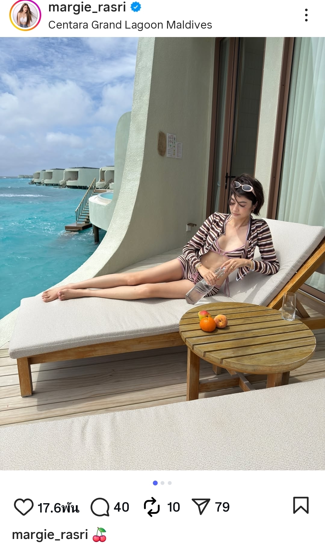 กรี๊ดดดดด!! ต้องกราบความสวยความแซ่บให้แม่ “มาร์กี้ ราศรี จิราธิวัฒน์” เลยค่ะ ณ จุดนี้! เรียกว่าทำเอาไอจีแทบระเบิดและทะเลมัลดีฟส์แทบจะกลายเป็นทะเลเดือด เมื่อคุณแม่ลูกแฝดคนสวยแพ็กกระเป๋าไปพักผ่อนสุดหรู กับทริปที่ลงรูปมาแต่ละช็อตก็ต้องร้อง “แอดยอมแล้วแม่จ๋าาาาาา”