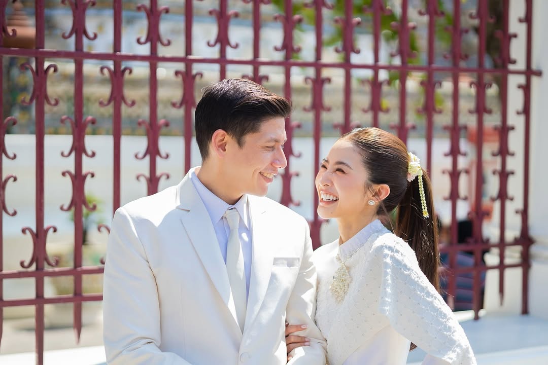 ​ด้านเจ้าสาว “มายด์” สวมชุดไทยสีขาวงาช้าง ที่ดูสวยสง่าแบบมินิมอลแต่เต็มไปด้วยรายละเอียดสุดประณีต ขณะที่เจ้าบ่าว “พาย” มาในชุดสูทไทยประยุกต์สีขาว ดูภูมิฐานและอ่อนโยนสุดๆ ภาพถ่ายคู่รักในบรรยากาศขรึมขลังของวัดราชบพิธฯ แต่กลับเต็มไปด้วยรอยยิ้มและแววตาแห่งความรักที่มองกันไม่ลดละ ทำเอาคนรอบข้างและแฟนๆ ที่เห็นภาพต่างซาบซึ้งในความรักที่มั่นคงของคู่นี้ เตรียมลุ้นชมความยิ่งใหญ่ของพิธีฉลองมงคลสมรสที่กำลังจะตามมาได้เลย!!