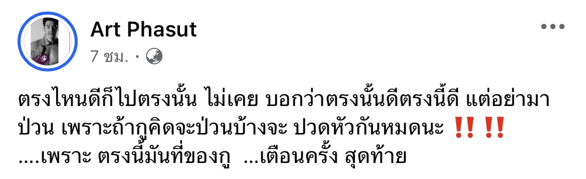 “อาร์ต พศุตม์” ของขึ้นกลางโซเชียล! โพสต์เดือด “อย่ามาป่วน ตรงนี้มันที่ของกู!” ย้ำชัดเตือนครั้งสุดท้าย ชาวเน็ตสงสัยเกิดอะไรขึ้นคะ!?
