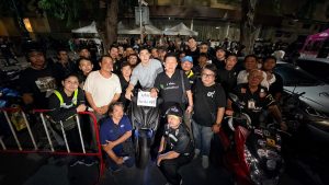 จริงๆ แก๊งนี้ก็เป็นแก๊งที่มาตั้งแต่ในหลวงรัชกาลที่9 ตั้งแต่ ปี 59 ก็เลยได้รวมกันอีกครั้งนึงในการทำจิตอาสาครับ จริงๆ มีอีกกลุ่มนึงยังอยู่ที่มาเลเซีย จริงๆ ฉุกละหุกมาก เพิ่งรู้กันเช้าเมื่อวาน แก๊งที่ไปขี่รถกันก็กำลังทยอยกลับมาไทย แต่ตอนนี้จะมีอยู่ 2-3 กลุ่ม กลุ่มผมจะเป็นกลุ่มเยือน ส่วนอีกกลุ่มก็จะเป็นกลุ่มหลักทางนี้ ของเราจะเป็นทางฝั่งบางแค มหาชัย แต่ไม่ได้แบ่งหรอกครับ เราคือกลุ่มเดียวกัน ตอนรัชกาลที่ 9 เราจะแบ่งกัน ช่วงนั้นพอผ่านไป 10 กว่าวันแรกเราก็คุยกันชัดเจนว่า เราคือทีมเดียวกัน ตอนนี้พอมาถึงงานของพระพันปีหลวงก็เลยคุยกับพี่เขาว่า เราจะรวมกลุ่มกันตรงนี้นะ ให้เป็นที่เดิมเหมือนครั้งที่ทำให้ในหลวงรัชกาลที่ 9 ครับ”