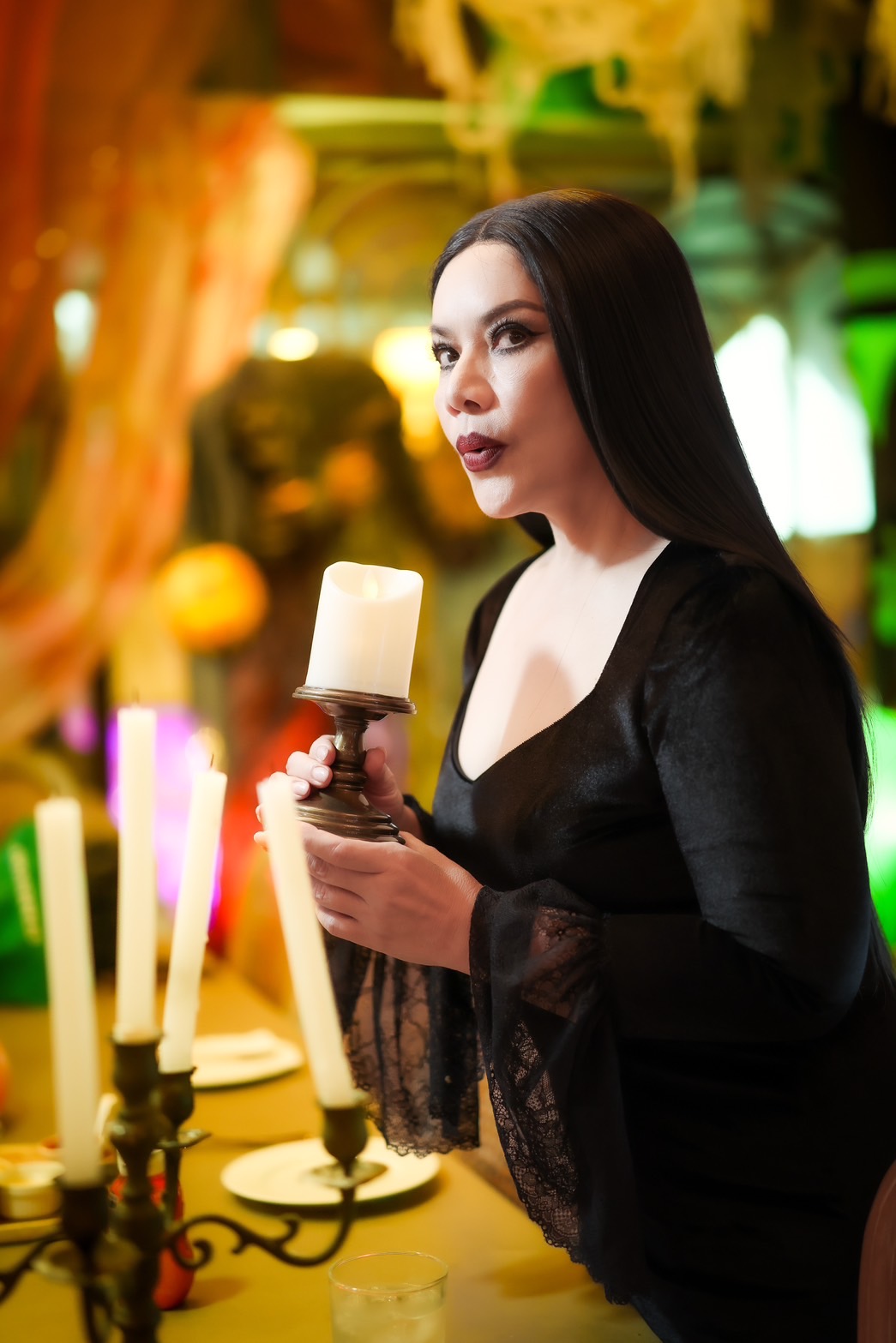 พี่หนูแหม่ม-สุริวิภา พิธีกรคนสวยยืนหนึ่งตลอดกาล ขอสวมวิญญาณผีสาวสุดแซ่บ Morticia Addams ฟาดอินเนอร์สวยสง่าปนลึกลับได้อย่างถึงใจทุกท่วงท่า ด้านคุณสามีอารมณ์ดี “พี่บ๊อบบี้ โรเบิร์ต” ก็ทุ่มสุดตัว เป็นทุกอย่างให้คุณภรรยาในลุคคุณพ่อบ้าน Gomez Addams ที่ดูอบอุ่นน่ารักน่าหยิก เป็นผีสุดคลูที่เห็นแล้วต้องเผลอยิ้มตาม!