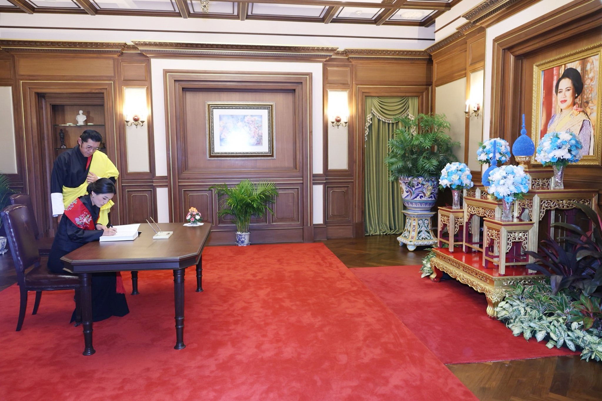 ธิบดี และสมเด็จพระราชินีแห่งราชอาณาจักรภูฏาน เช่นกัน และรู้สึกซาบซึ้งในพระมหากรุณาธิคุณที่เสด็จพระราชดำเนินมาถวายความอาลัยในครั้งนี้