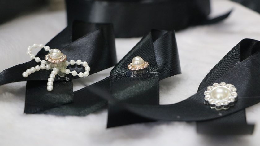 โบว์ริบบิ้นสีดำประดับมุกและเพชรเทียมมีความสวยงาม เมื่อกระทบแสงไฟจะเกิดประกายระยิบระยับ มีทั้งขนาดเล็กและขนาดใหญ่ พร้อมเข็มกลัดด้านหลัง ซึ่งเจ้าของร้านยืนยันว่าจะแจกฟรีไปเรื่อย ๆ จนกว่าจะไม่มีคนมารับ