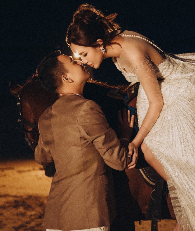 งานแต่งงานเริ่มขึ้นตามฤกษ์ดี เวลา 09.09 น. วันที่ 31 ตุลาคม 2568 ณ โรงแรมทวินโลตัส นครศรีธรรมราช โดยพิธีการในช่วงเช้าเต็มไปด้วยความอบอุ่นเรียบง่าย ญาติผู้ใหญ่และเพื่อนสนิทของทั้งสองฝ่ายเดินทางมาร่วมเป็นสักขีพยานแห่งรัก อดีตพระกาโตะ เจ้าบ่าวสุดหล่อมาในชุดสูทสีชมพู ส่วนเจ้าสาวก็มาในชุดไทยศิวาลัยแบบประยุกต์สีชมพูอ่อน สวยหวานออร่าจับสุด ๆ
