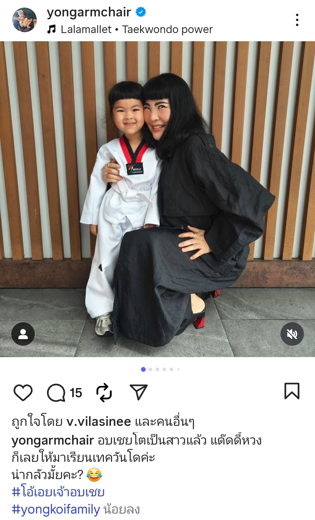 ​งานนี้ทำเอาบรรดาแฟนคลับและคนในวงการเข้ามาแซวคุณพ่อโย่งกันยกใหญ่ ว่านี่คือการ “กันซีน” ว่าที่ลูกเขยแบบสุดตัว เพราะด้วยความที่ “น้องอบเชย” ยิ่งโตยิ่งน่ารัก แถมยังฉายแววสวยแบบมีสไตล์สุดๆ ตามรอยคุณพ่อคุณแม่ จึงไม่แปลกใจที่คุณพ่อจะแอบหวงลูกสาวคนเดียวแบบออกนอกหน้า! ซึ่งการส่งลูกสาวเรียนเทควันโดนอกจากจะช่วยให้ร่างกายแข็งแรงแล้ว ยังเป็นการสอนวิชาป้องกันตัวให้กับลูกสาวไว้ดูแลตัวเองในอนาคตด้วย นับเป็นวิธีรับมือความห่วงลูกสาวสไตล์พ่อโย่งที่น่ารักและน่าเอ็นดูจริงๆ จ้า!