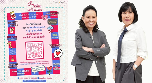 “ความรักเป็นเรื่องของคนทุก GEN” และ “ความสัมพันธ์” คือสิ่งที่เปลี่ยนแปลงไปตามยุคสมัย ปี 2026 นี้ “CLUB FRIDAY THE SERIES” จาก CHANGE2561 ในรูปแบบใหม่ที่สะท้อน “สถานะความรัก” ของคนยุคดิจิทัล ผ่านโปรเจกต์ “CLUB FRIDAY THE SERIES : LOVE STATUS” ที่จะถ่ายทอด 12 เรื่องรัก 12 สถานะ ตลอดทั้ง 12 เดือน โดยมีนักแสดงชั้นนำ 12 คู่ มาร่วมถ่ายทอดหลากมุมมองของหัวใจคนยุคใหม่