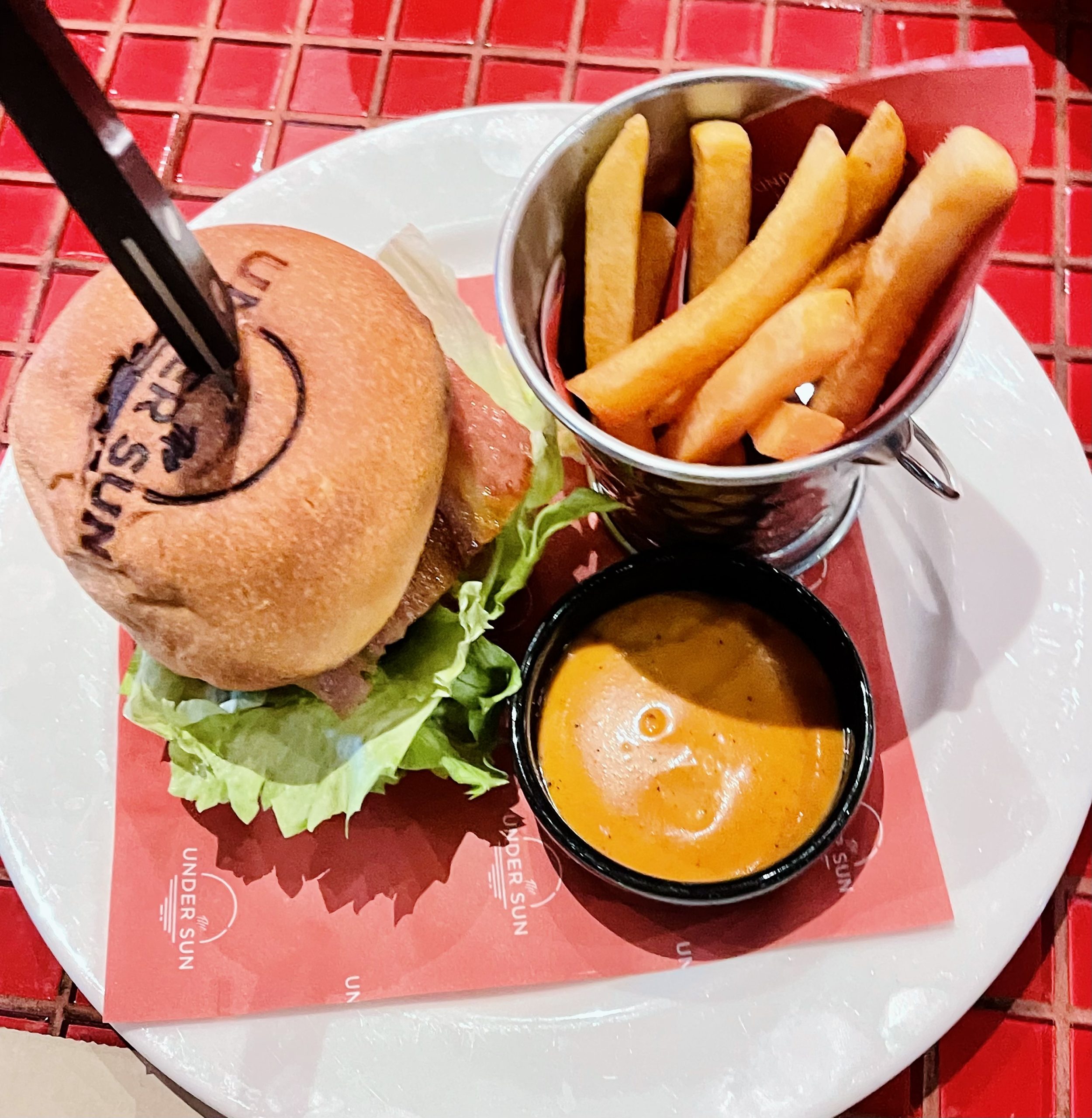 ตกเย็นเรามานั่งทานอาหารกันริมทะเล กันที่ Under the sun ที่เป็นทั้งร้านอาหารและคาเฟ่ ที่อยู่ในบริเวณเดียวกับที่พัก Ana Anan Resort & Villas โดยตัวร้านเน้นเป็นสีแดง มีโซนนั่งทั้งด้านในและด้านนอก เหมาะสำหรับพาครอบครัวมานั่งชิล ๆ กันยามเย็น