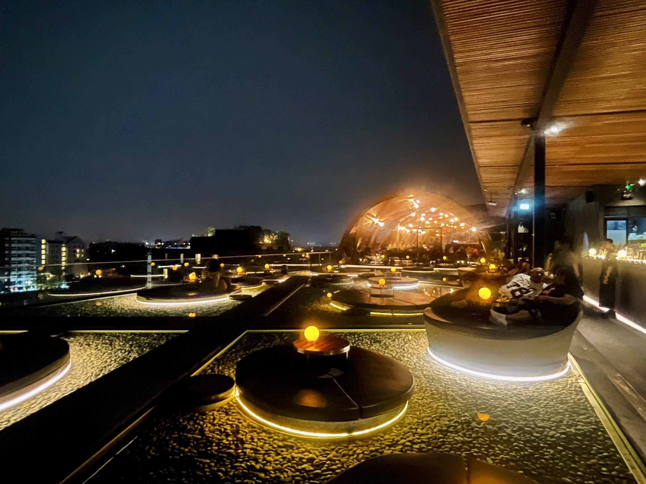 ค่ำอีกหน่อยที่นี่ก็ยังมีในส่วนของ Over The Moon ที่อยู่ชั้นบนสุด สามารถขึ้นมานั่งชิลสั่งเครื่องดื่มทั้งค็อกเทล และม็อกเทล ฟังเพลงชิล ๆ พร้อมบรรยากาศที่ลมพัดเย็นสบาย เห็นวิวมุมสูงของทะเลอีกด้วยค่ะ เปิดบริการทุกวัน 17.00 – 23.00 น.