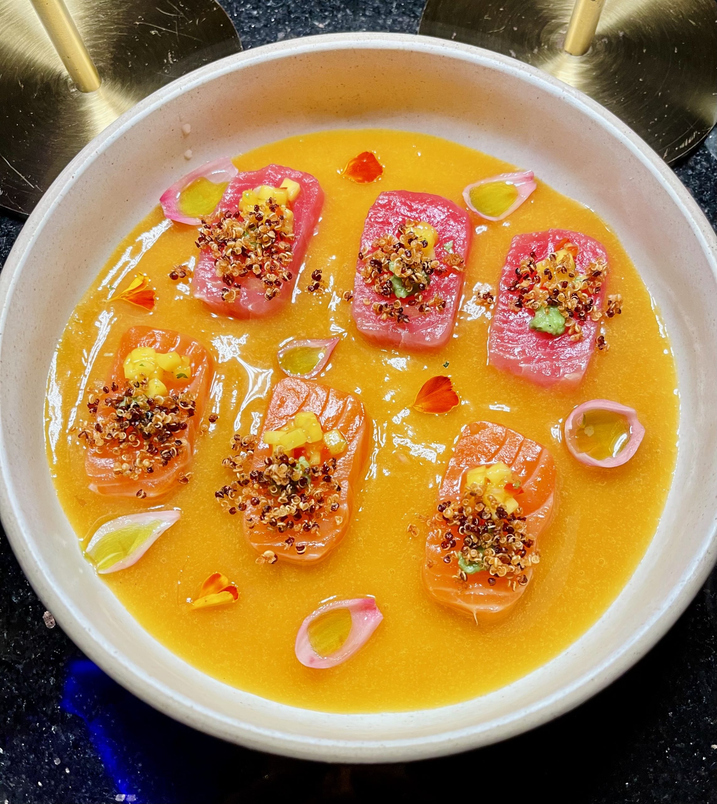 มี อาหารเช้าลอยน้ำ คือ Floating Breakfast มาเสิร์ฟ ถึงห้องพัก สำหรับห้องพัก พูลวิลล่า แต่ถ้าทานไม่อิ่มที่ห้อง สามารถ มานั่งทานอาหารกันที่ The Sora Lounge ที่นี่จะมีทั้งแบบบุฟเฟ่ต์ ให้เลือกตักหลากหลายเมนูและ A la carte ที่สามารถสั่งทานเพิ่มเติมได้ มีเมนูพิเศษที่สามารถสั่งเพิ่มเติมได้ไม่อั้นเช่นเดียวกัน
