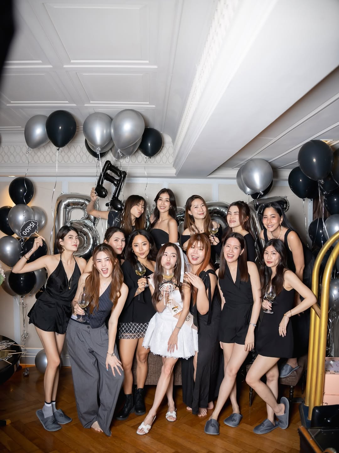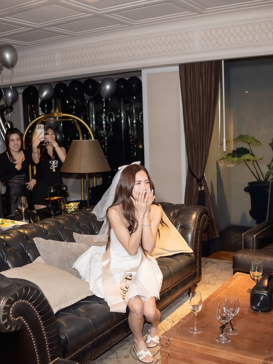 งานนี้มาใน “ธีมขาว-ดำ” สุดเก๋ โดยมีเพียง “ว่าที่เจ้าสาว” เท่านั้นที่โดดเด่นสง่าในชุดเดรสสีขาวมินิเดรสสุดน่ารัก ท่ามกลางบรรยากาศที่อบอวลไปด้วยรอยยิ้ม เสียงหัวเราะ และความรักความผูกพันของกลุ่มเพื่อนสนิท ซึ่งงานนี้ไม่ได้มีแค่ความสนุก แต่ยังซึ้งจนน้ำตาคลอ! เพราะมิตรภาพของเพื่อนๆ นั้นแน่นแฟ้นสุดๆ!