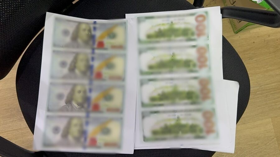 ธนบัตรรัฐบาลไทยปลอม ได้แก่ ฉบับละ 1,000 บาท จำนวน 2 ฉบับ และฉบับละ 500 บาท จำนวน 1 ฉบับ (ระบุหมายเลขธนบัตรในสำนวน)