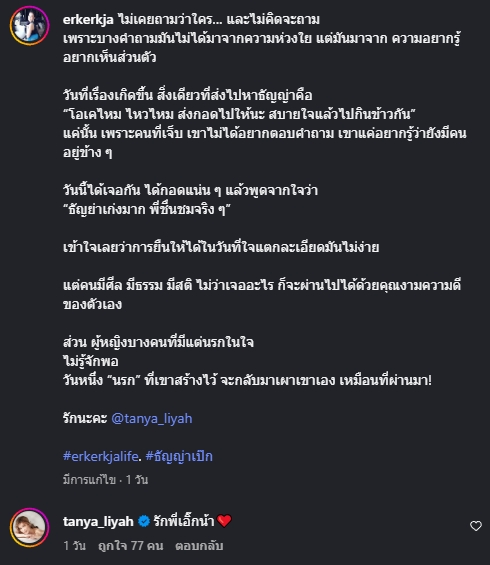 นับเป็นโมเมนต์เพื่อนหญิงพลังหญิงเลย สำหรับ ธัญญ่า ธัญญาเรศ และ เอิ้ก พรหมพร ล่าสุด เอิ้ก โพสต์ภาพสวมกอด ธัญญ่า พร้อมร่ายยาวข้อความให้กำลังใจ ธัญญ่า ว่า