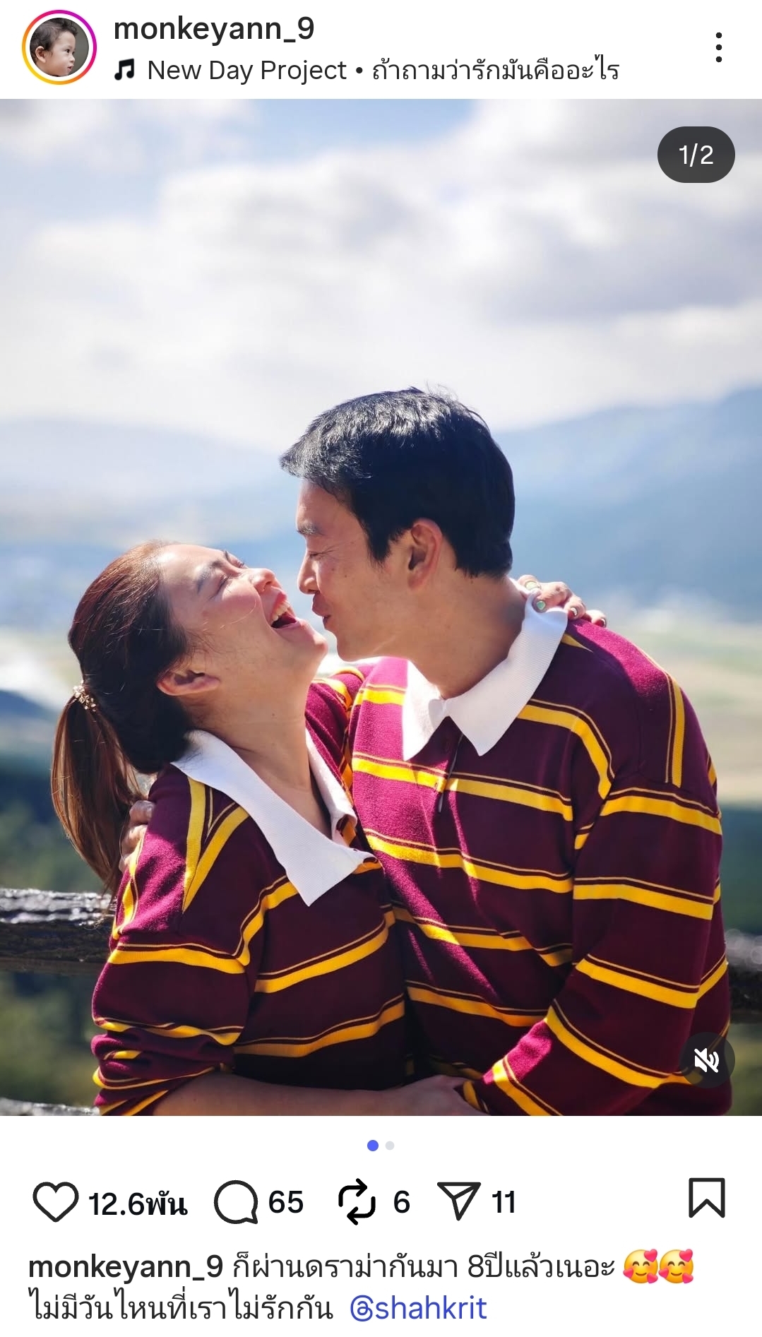“ก็ผ่านดราม่ากันมา 8 ปีแล้วเนอะ ไม่มีวันไหนที่เราไม่รักกัน @shahkrit”