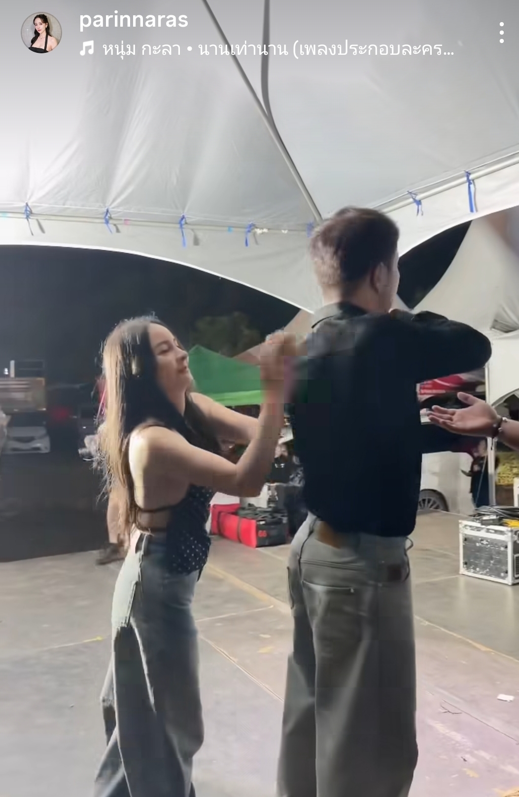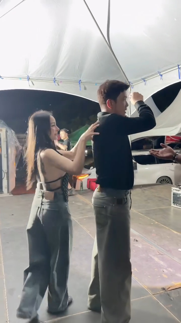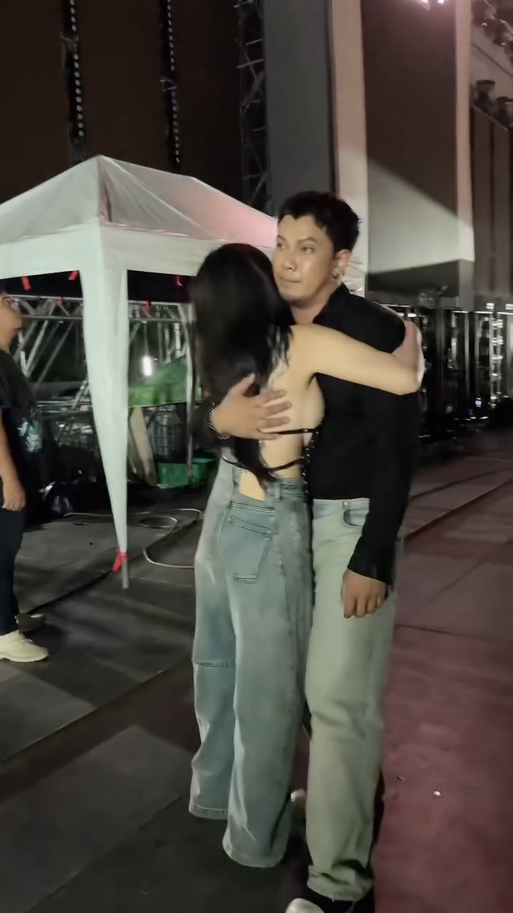 ตลอดการแสดงของ “หนุ่ม กะลา” เจ้าตัวก็โชว์พลังเสียงและลีลาได้อย่างเต็มที่ สร้างความสุขให้กับแฟนเพลงชาวสุพรรณบุรีได้อย่างล้นหลาม แต่สิ่งที่หลายคนจับตามองมากที่สุดคือภาพเบื้องหลังการทำงาน เมื่อนักร้องดังกำลังเดินลงจากเวทีหลังจบคอนเสิร์ต “จ๊ะโอ๋ งามพริ้ง” ที่มาในชุดเสื้อครอปดีไซน์เก๋กับกางเกงยีนส์ขาบานสุดชิค ก็ได้เดินเข้าไปหาฝ่ายชายทันที โดยมีช็อตที่น่ารักและหวานซึ้งคือการที่ “จ๊ะโอ๋” สวมกอด “หนุ่ม กะลา” จากด้านหลัง และพูดคุยให้กำลังใจกันอย่างใกล้ชิด ท่ามกลางทีมงานและผู้คนที่เห็นเหตุการณ์