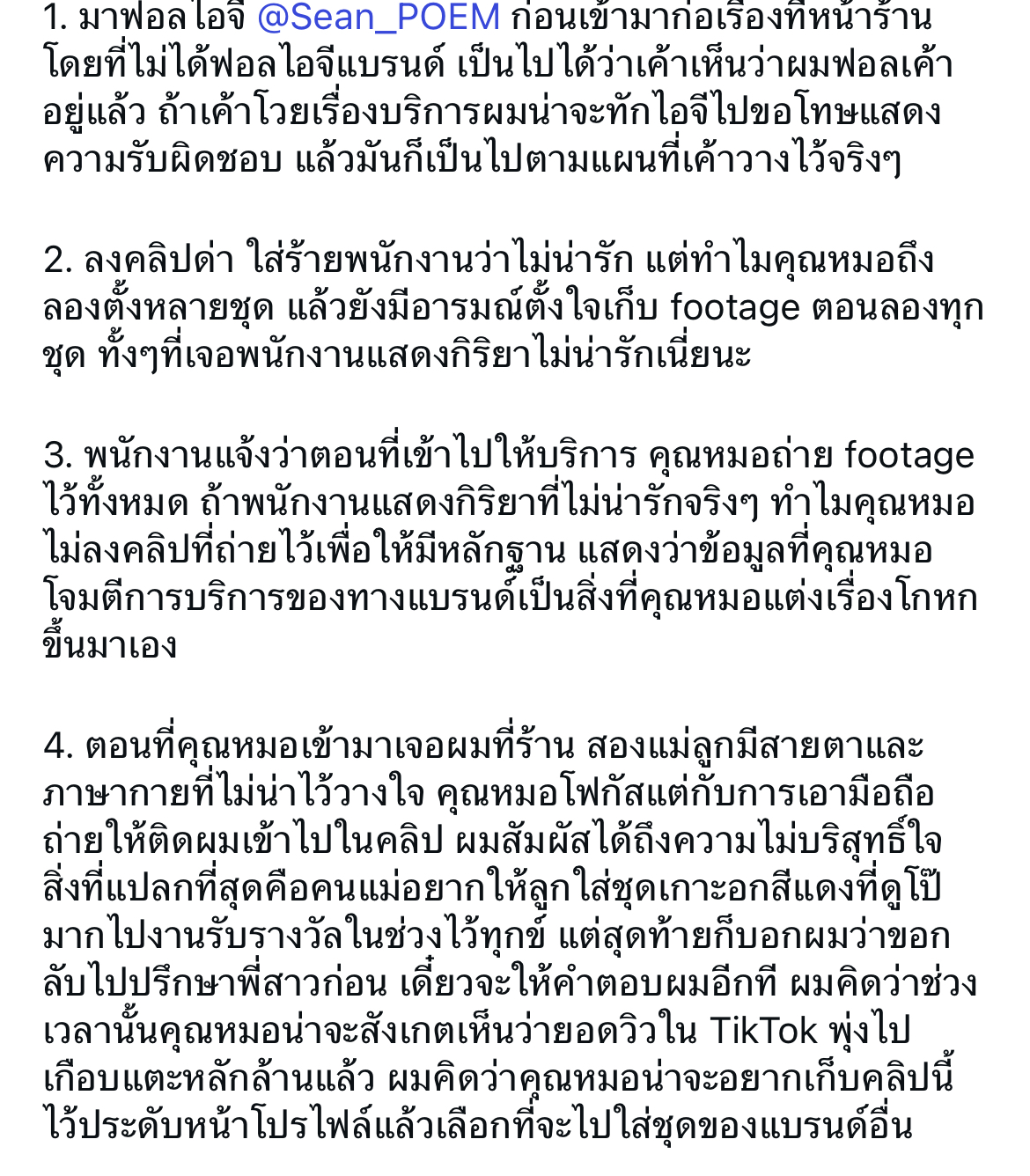 ฌอน ชวนล ไคสิริ ผู้ก่อตั้งและผู้อำนวยการฝ่ายสร้างสรรค์แบรนด์แฟชั่นชื่อดัง POEM โพสต์เตือน! #อินฟลู ลวงโลกทำคอนเทนต์คุกคามร้านค้าเรียกทัวร์มาลงปั่นยอดวิว พร้อมแคปชั่นปกคลิปว่า จบแพทย์จุฬาฯหน้าตาก็ดีนะแต่…
