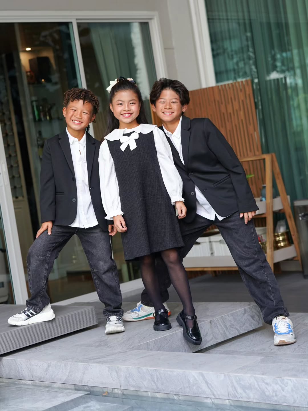 ถึงแม้ว่าคุณพ่อคุณแม่จะหล่อสวยเป๊ะปัง แต่ดูเหมือนว่าการถ่ายภาพแบบ “นิ่ง ๆ เรียบร้อย” จะไม่ใช่ทางของ 3 ยอดกุมารอย่างแรง! เพราะทันทีที่กล้องเริ่มทำงาน อินเนอร์ความซนและเป็นตัวของตัวเองของ น้องคิริน, น้องไนร่า และ น้องเอเดน ก็พุ่งทะลุปรอท! ไม่ว่าจะเป็นท่าทางที่ไม่ซ้ำกันในแต่ละวินาที ใบหน้าสุดฮาที่พร้อมจะหลุดเฟรมตลอดเวลา หรือแม้แต่การโพสท่าที่บ่งบอกว่า “หนูไม่ชินกับอะไรที่เป็นทางการเลยค่าาาา”