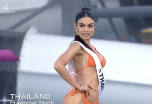 ตัวแทนประเทศไทย วีนาปวีนา ซิงห์ มาในชุดว่ายน้ำ สีส้ม กับผมรวบตรงหางม้า ทำเอาทางด้าน บอสณวัฒน์ เจ้าของลิขสิทธิ์ มิสยูนิเวิร์สไทยแลนด์ โพสต์ผ่านเฟซบุ๊ก ภูมิใจกับผลงานของวีณาวันนี้ครับ