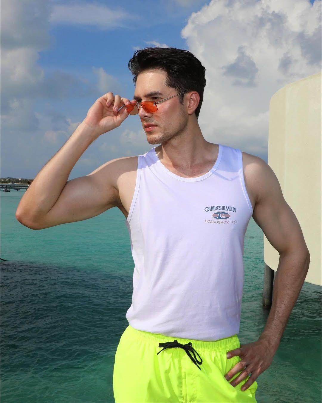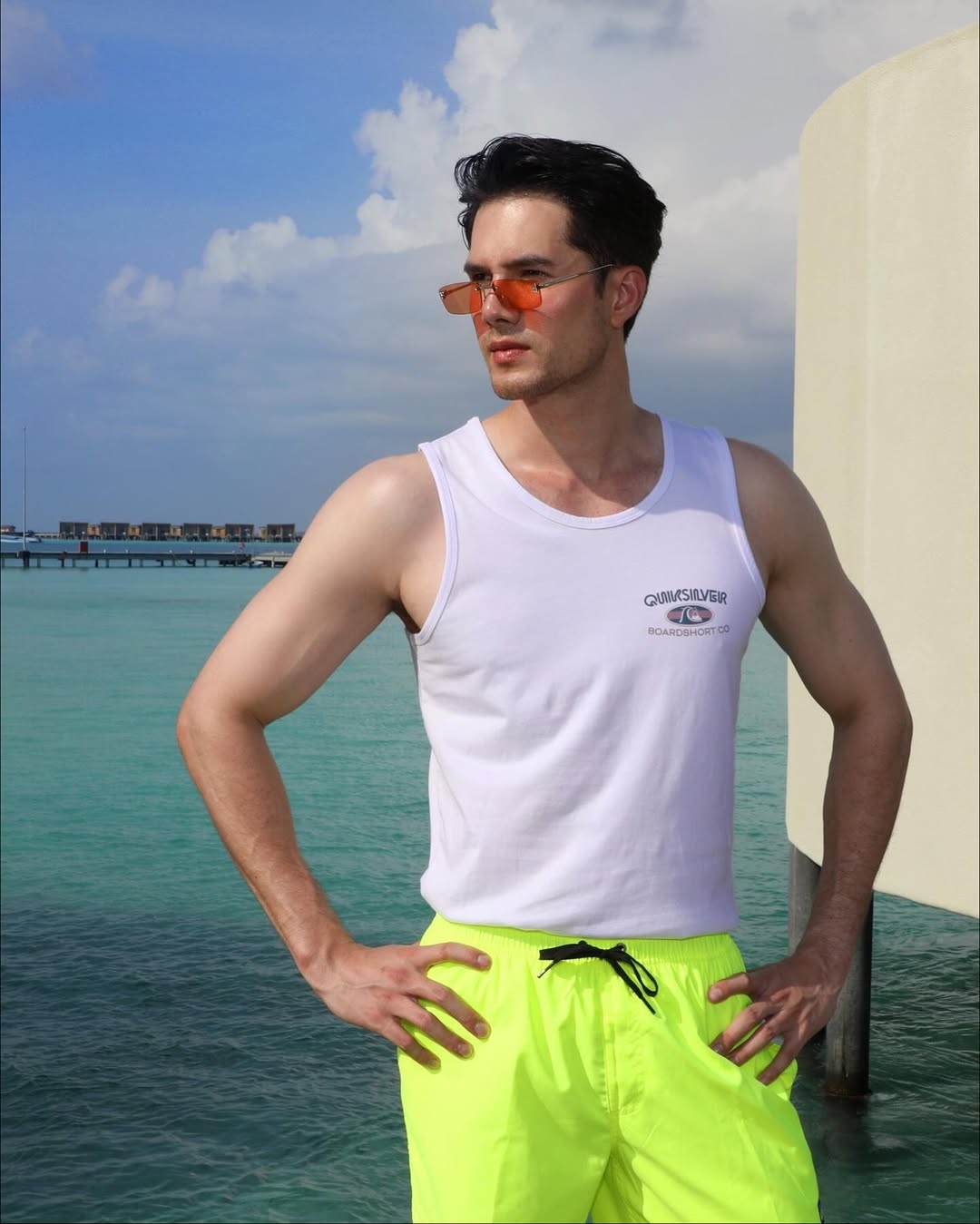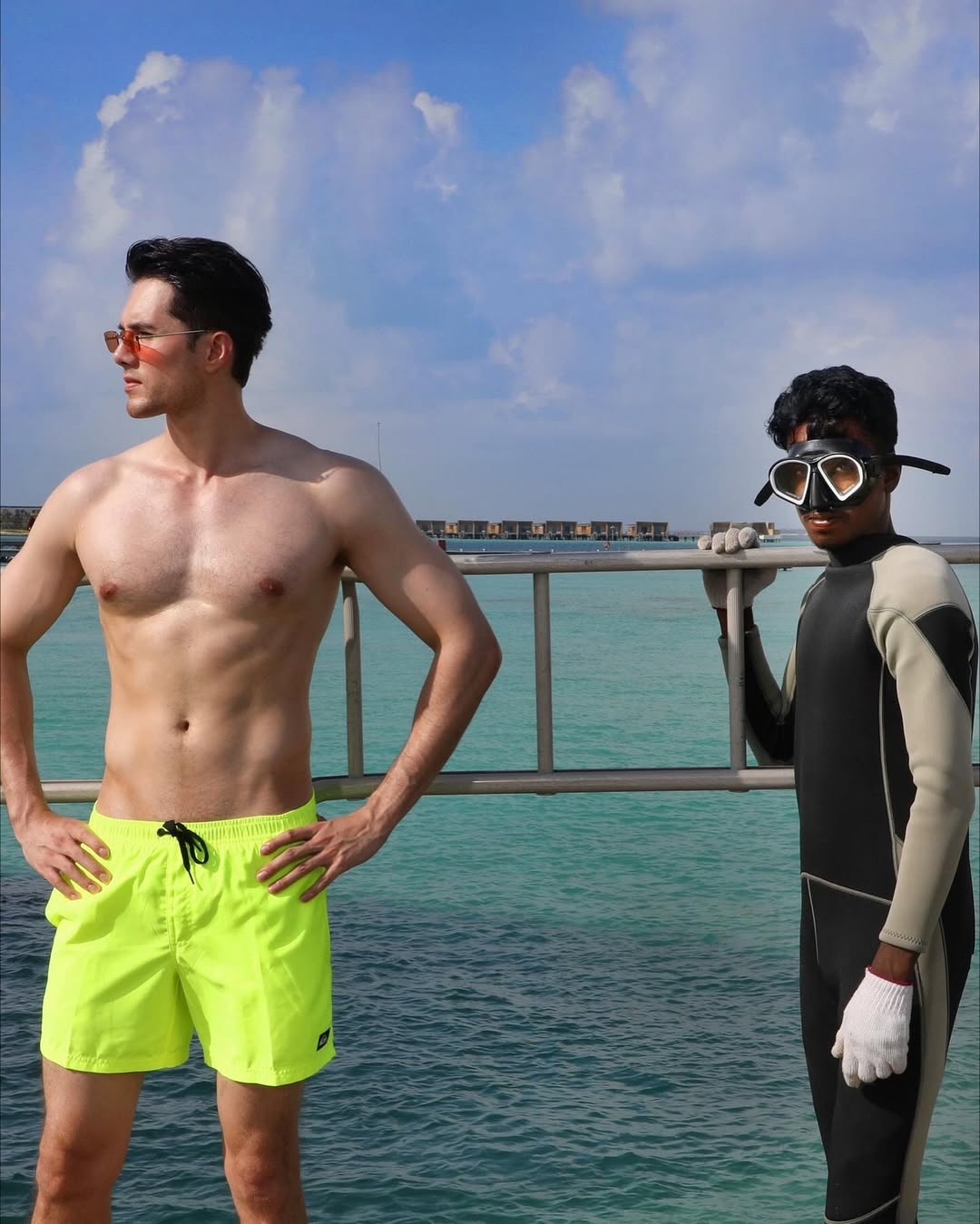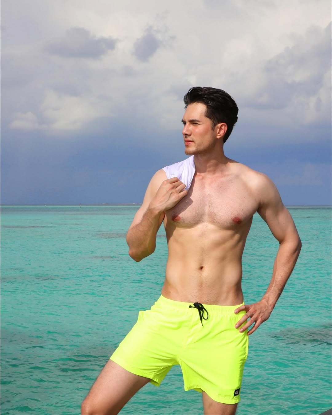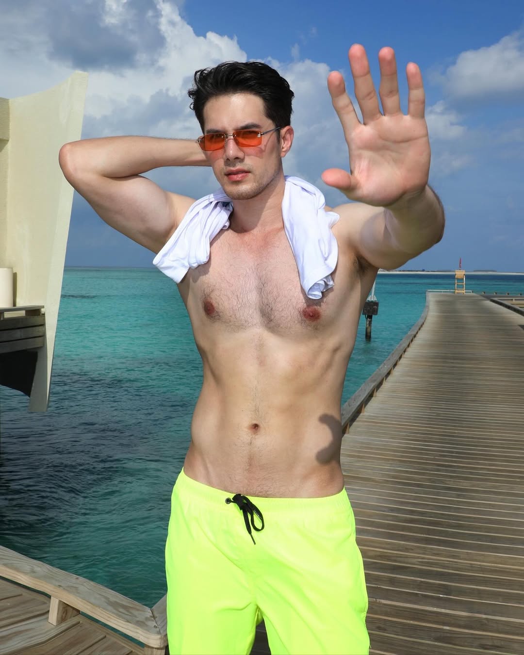 ก็แหม… พี่มิกค์เล่นจัดหนักเสิร์ฟความซี๊ดขั้นสุด! ถอดเสื้อโชว์หุ่นล่ำ ซิกซ์แพ็กแน่นๆ ขาวจั๊วะน่าเจี๊ยะ! ไม่ว่าจะช็อตยืนโพสท่าเท่ๆ ริมระเบียงในเสื้อกล้ามสีขาว หรือช็อตเปลือยท่อนบนอวดกล้ามแขนเป็นมัดๆ ตัดกับกางเกงว่ายน้ำสีเหลืองนีออนที่แสบตาสะท้อนแดด… โอ๊ยยย บอกเลยว่าดาเมจรุนแรงมาก!