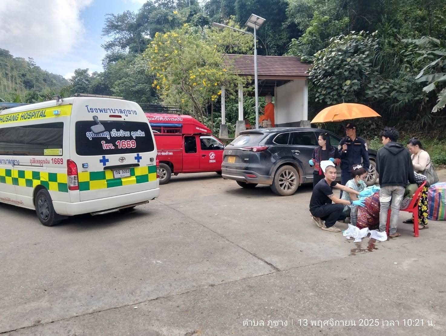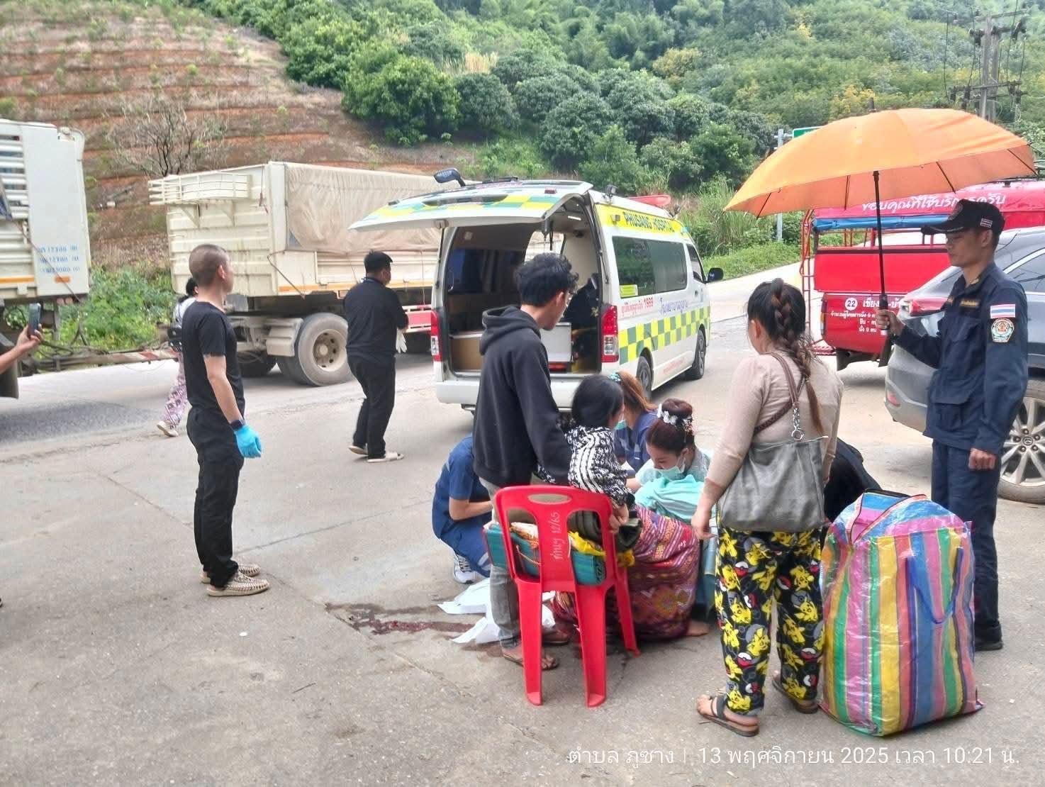 ระหว่างที่งานกำลังดำเนินไป เกิดเหตุฉุกเฉินขึ้นเพียงไม่กี่ร้อยเมตรจากจุดจัดงาน เมื่อได้รับแจ้งว่ามี หญิงชาวลาว อายุประมาณ 17 ปี เจ็บท้องคลอดกะทันหัน บริเวณหน้าด่านพรมแดนบ้านฮวก เจ้าหน้าที่จากหลายหน่วยงาน ทั้ง ตชด.326, ศุลกากร, สรรพสามิต และตรวจคนเข้าเมือง ซึ่งส่วนใหญ่กำลังร่วมกิจกรรมอยู่ ต่างหยุดทุกอย่างแล้วรีบรุดไปยังจุดเกิดเหตุทันที