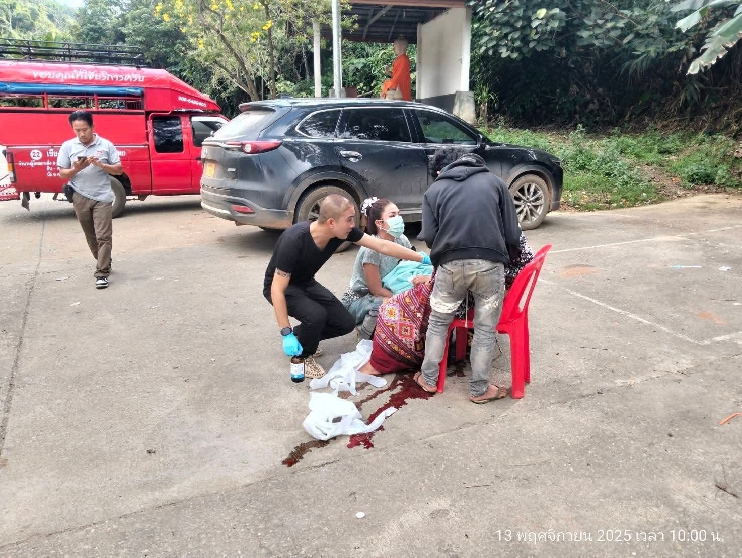 ขณะนั้น นายอภินันทร์ แสวงผล และ นางสาวกฤตนรี สมพะวงศ์ เจ้าหน้าที่ด่านควบคุมโรคติดต่อระหว่างประเทศ ซึ่งเพิ่งแสดงฟ้อนรำเสร็จและยังอยู่ในชุดฟ้อนรำเต็มรูปแบบ ได้รับแจ้งเหตุและรีบเปลี่ยนจากบทบาทนักแสดงสู่การเป็น “ผู้ช่วยชีวิต” อย่างไม่ลังเล