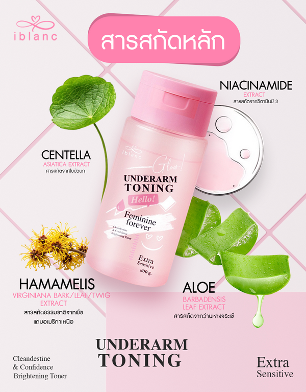 สำหรับใครที่ยังไม่มั่นใจว่าจะเลือกผลิตภัณฑ์ไหนดี จะเพิ่มรูทีนการดูแลด้วยสครับผิวก็ยุ่งยากไปไม่ค่อยมีเวลา วันนี้  ไอบลองก์ ขอแนะนำตัวช่วยใต้วงแขนของสาวยุคใหม่ “ไอบลองก์ อันเดอร์อาร์ม โทนนิ่ง” ผลิตภัณฑ์ที่ออกแบบมาในรูปแบบโทนเนอร์ ที่มีเนื้อสัมผัสบางเบา ซึมไว ไม่เหนียวเหนอะหนะ  แค่เช็ดทำความสะอาดก็เคลียร์ปัญหาผิวใต้วงแขนได้ตรงจุด ผสานด้วยพลังคุณค่าของพฤกษาธรรมชาติจาก ใบบัวบก อโลเวร่า และวิชฮาเซล ช่วยให้ผิวใต้วงแขนเรียบเนียน ชุ่มชื้น ไร้ตุ่มหนังไก่ และยังช่วยลดกลิ่นกายอย่างได้ผล ที่สำคัญปราศจากแอลกอฮอล์และสารระคายเคือง อีกทั้งยังมีตัวช่วยของสารสกัดจาก วิตามิน B3 ช่วยกู้ผิวคล้ำเสียให้กลับมากระจ่างใสขึ้นอย่างเป็นธรรมชาติ เคล็ดลับของผิวใต้วงแขนเนียนกระจ่างใส ลดกลิ่นกาย รูขุมขนกระชับในสเต็ปเดียว อ่อนโยนและปลอดภัยกับทุกสภาพผิว ที่สำคัญไม่เป็นคราบฝังแน่นติดเสื้อผ้าให้กวนใจสาว ๆ อีกด้วย..