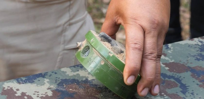 ​ฝ่ายกองกำลังไทย นำโดย พันตรี ผดุงเดช พ่อค้าช้าง รองผู้บังคับกองพันทหารราบที่ 12 ได้บรรยายสรุปสถานการณ์และนำคณะ AOT-TH เข้าชมยังจุดที่พบทุ่นระเบิด โดยสรุปว่า ทุ่นระเบิดที่พบเป็นทุ่นระเบิดใหม่จำนวน 4 ลูก ที่น่าตกใจคือมีการหยอดกาวที่รูสำหรับถอดสลักเพื่อป้องกันการเก็บกู้ ซึ่งถือเป็นการกระทำที่ไร้มนุษยธรรมอย่างยิ่ง เพราะเป็นการวางทุ่นระเบิดเพื่อหวังสังหารทหารไทยโดยเฉพาะ ไม่ใช่เพื่อป้องกัน